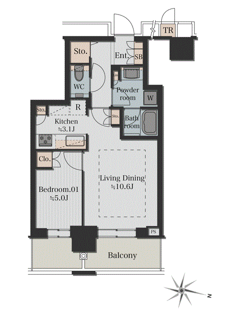 | 専有面積 | 46.28㎡ | バルコニー面積 | 9.04㎡ |