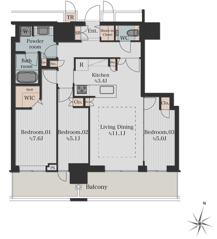 | 専有面積 | 77.59㎡ | バルコニー面積 | 16.66㎡ |